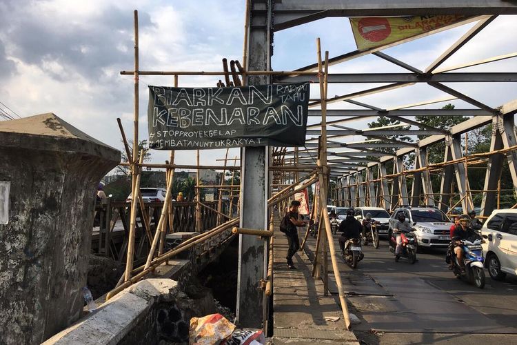 Mahasiswa GEMA Bandung unjuk rasa di Jembatan Dayeuhkolot, menuntut transparansi renovasi yang belum terealisasi.