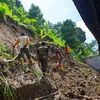 "Terjadi pergeseran tanah hingga mengakibatkan longsor. Sedang dalam penanganan Retana (relawan BPBD) setempat,” kata Rudi.