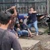 Mereka melempar beberapa barang ke arah mobil sambil berteriak meminta berhenti. Karena kondisi jalanan ramai, akhirnya mobil tak lagi dapat bergerak melarikan diri.