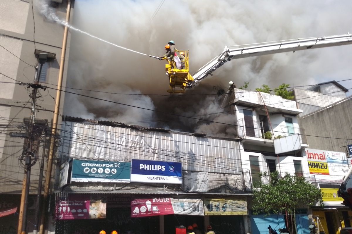 "Kami turunkan juga dari UPT untuk mempercepat pemadaman. Bangunannya cukup rapat, kanan dan kiri bangunan ada ruko lainnya sehingga khawatir merembet," ucap Gun gun.