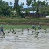 Kondisi lahan pertanian di Mangkubumi, Kota Tasikmalaya, Jawa Barat, yang saat ini memasuki masa tanam usai musim kemarau panjang sampai akhir tahun 2023 lalu pada Senin (4/3/2024).Nurahmah mengaku sudah puluhan tahun menjadi buruh tani saat masa tanam padi berlangsung dan biasanya sibuk diperkerjakan lagi saat nanti musim panen.