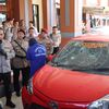 Sewaktu kembali ke mobil dan menyalakan mesin, mobil itu langsung bergerak dan menabrak bagian depan minimarket.