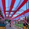 Berbahan dasar kardus dan styrofoam, warga gotong royong membuat replika tersebut untuk dipamerkan dalam perlombaan saat perayaan HUT ke-79 RI.