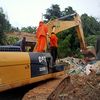 BPBD Majalengka berkoordinasi dengan BPBD Kabupaten Kuningan untuk proses penanganan pembersihan menggunakan alat berat.