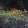 "Ada material pohon dan akar besar yang menutup badan jalan," ucap Asep.