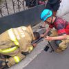 Petugas menggunakan tangga untuk turun ke sungai dan mendekati lokasi kucing.