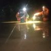 Petugas BPBD, Tagana, Polri, TNI, dan relawan bencana bersama warga sibuk membantu evakuasi yang terjebak di rumahnya untuk diamankan ke pengungsian sampai menjelang sahur pada Jumat (14/3/2025) dini hari.